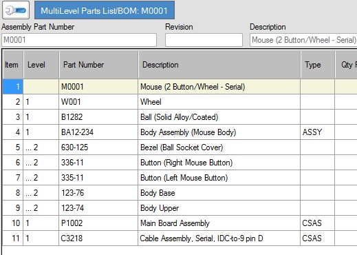 On the previous page we showed a Muli-Level Bill of Materials containing a number of sub assemblies.