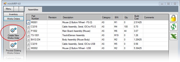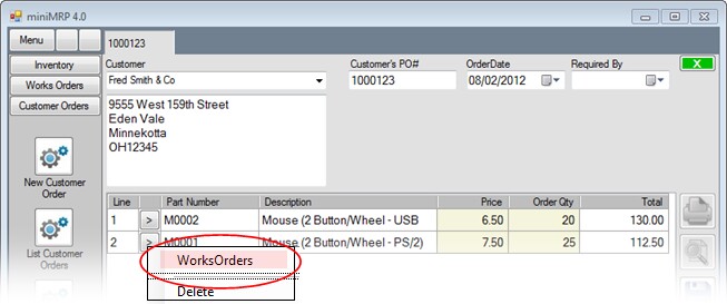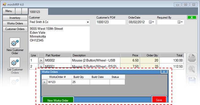 This version of minimrp allows you to create work orders two different ways.