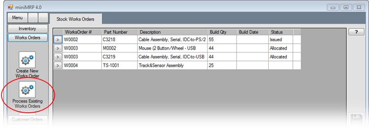 A works order in the "Allocated" state has not made any adjustments at all to your inventory but it does tell miniMrp what you intend to do in future. miniMrp monitors all active/allocated work orders and updates the shortage report showing you at any time what materials you need to procure in order to complete all of your planned work orders.