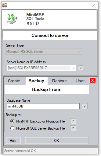 Select the option to Backup to a "MiniMRP Backup or Migration File".
